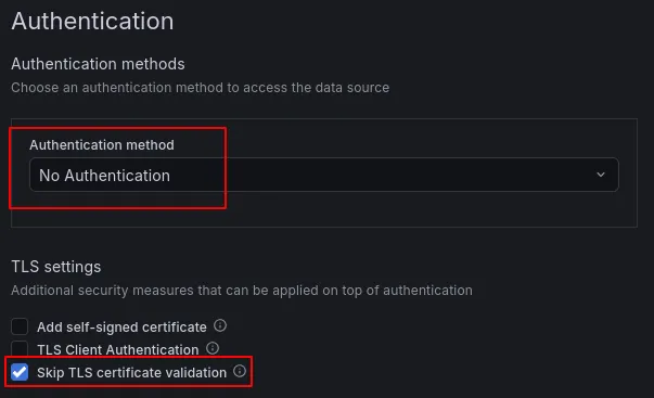 | Préciser pas d’authentification et passé la vérification de certificat (car autosigné) : | ![]() |