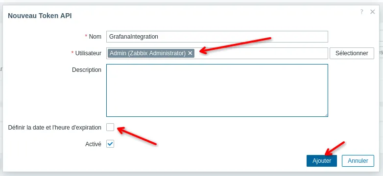 Section titled “Connexion à ZABBIX”Génération de la clef d’API
