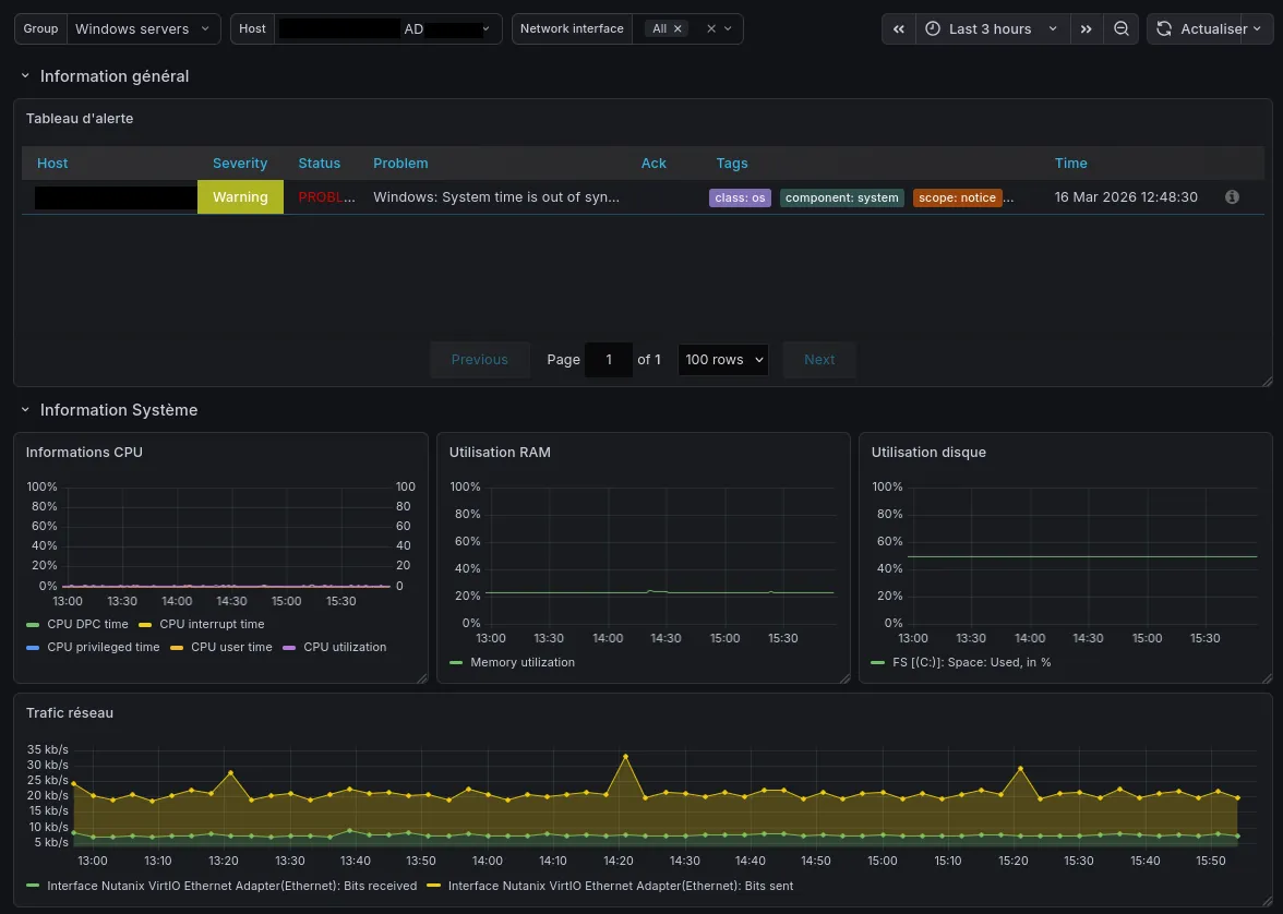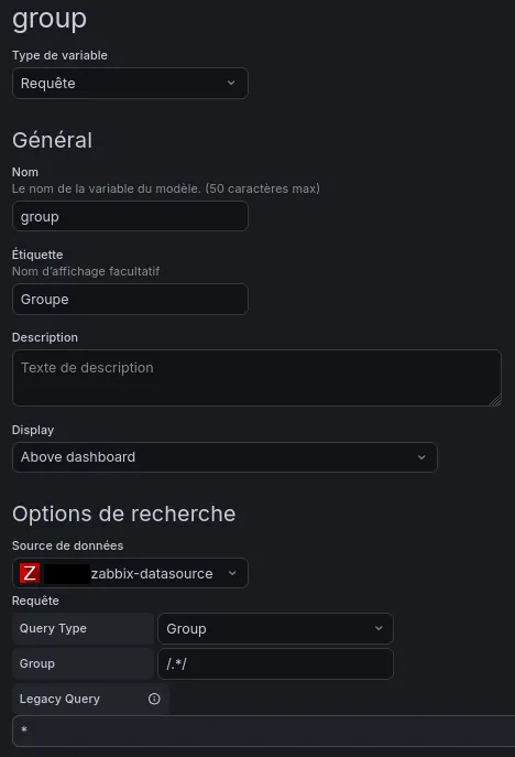 Section titled “Création du Dashboard”Nous allons voir les étapes général afin d’arriver au mieux à créer un dashboard adapté à Zabbix :