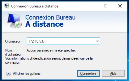 Section titled “3. Connexion depuis un poste Windows”Ouvrir l’application “Bureau à distance”