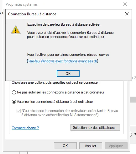 Cela permet au serveur d’accepter les connexions RDP depuis d’autres postes du réseau.