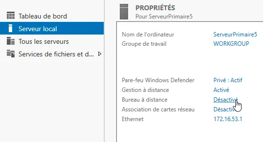 1. Activation du Bureau à Distance sur le serveur