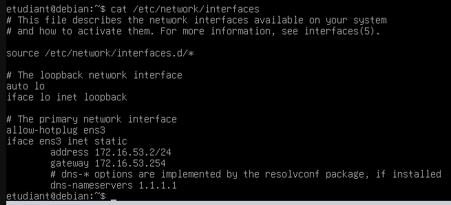 Confirmation de la carte réseau utilisé pour le DHCP (ici ens3) :